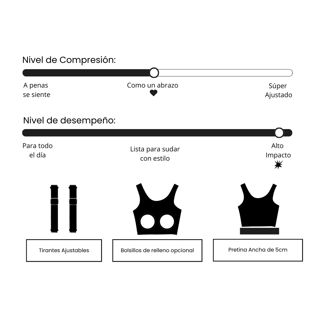 • Ajuste personalizable: Sus tirantes ajustables aseguran que encuentres el fit perfecto para cualquier actividad.